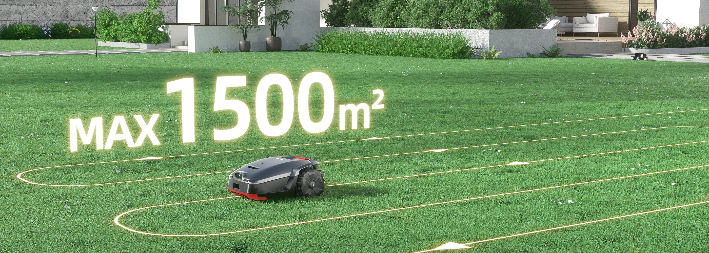 Engineered for efficiency. While rated for 1500㎡, the H1 can master over 2000㎡ in a single day. 120 minutes of continuous mowing per charge.