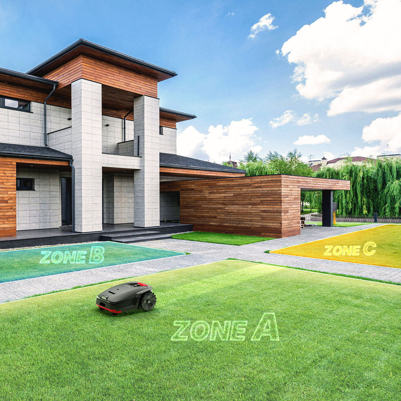 Total control via the Goalker App. Adjust cutting height electronically, schedule multi-zone tasks, or command your mower with voice assistants like Alexa and Google Home.