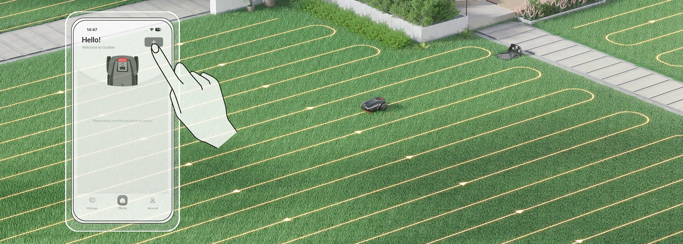 Efficient "S-shape" intelligent routing. Create custom schedules and boundaries for different lawn areas through the Goalker App.